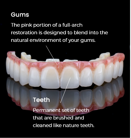 - Custom full-arch prosthesis crafted for natural aesthetics.